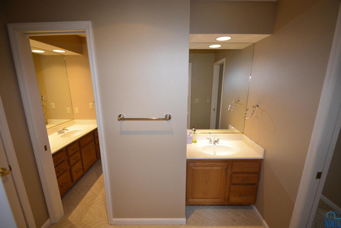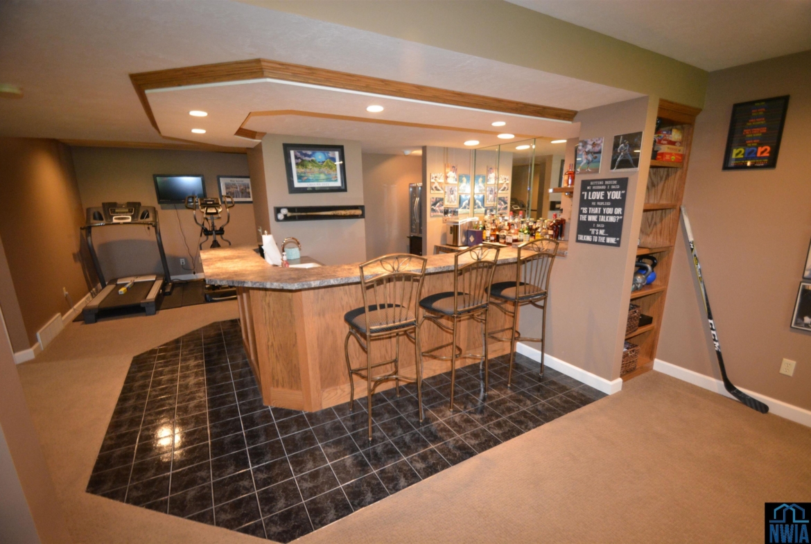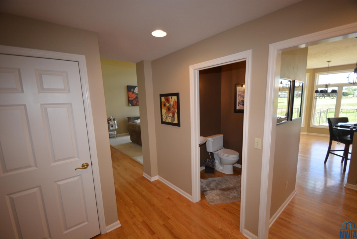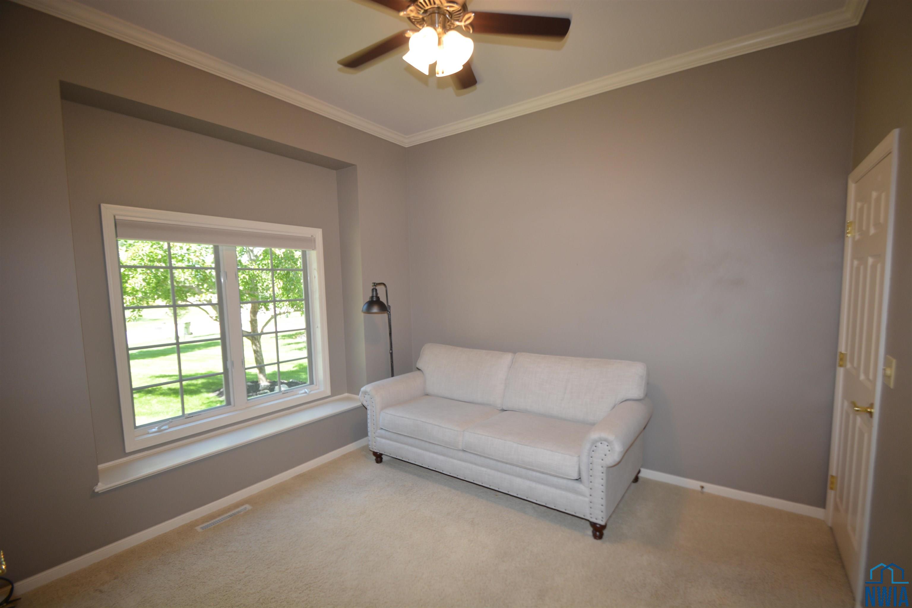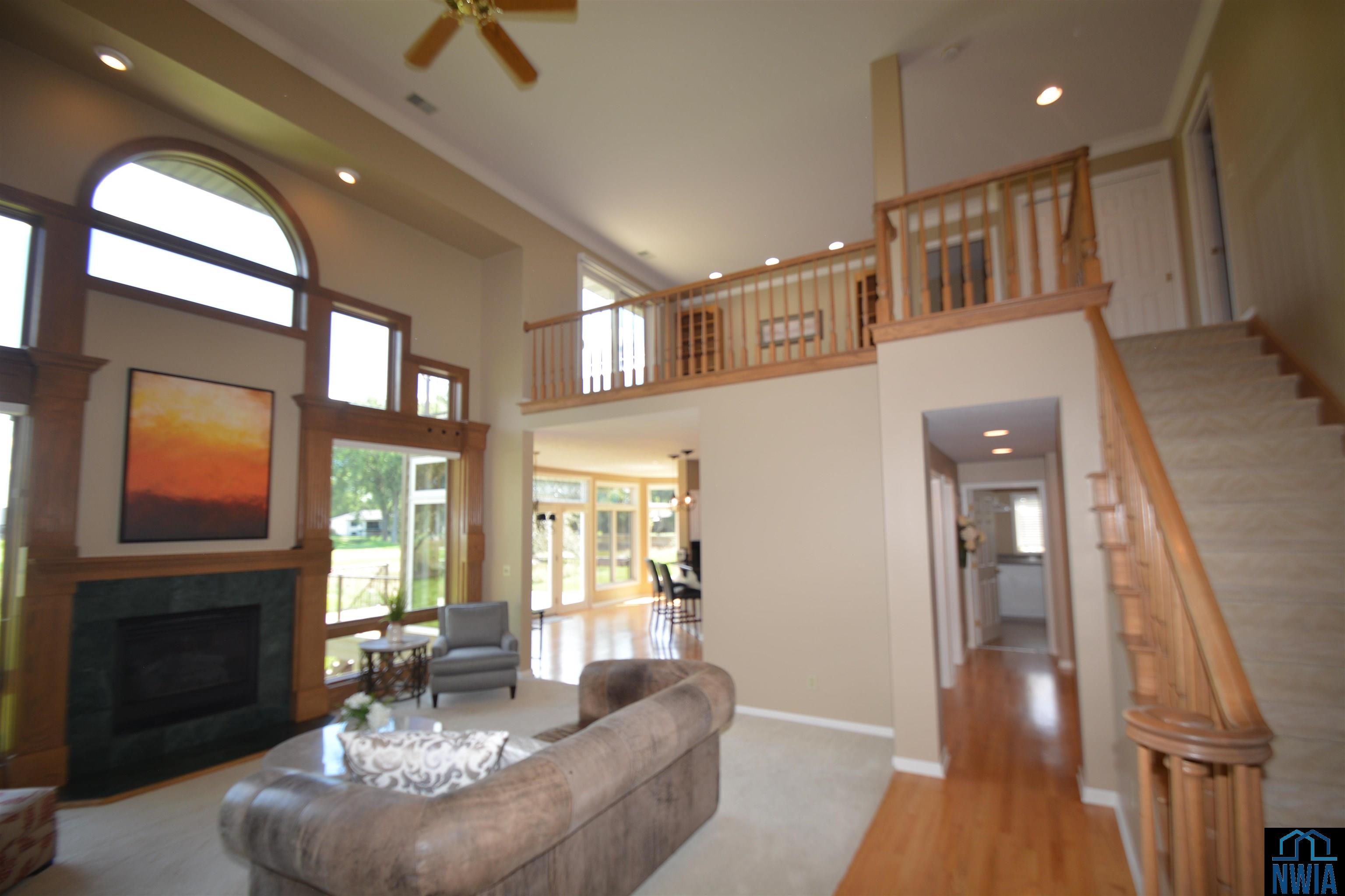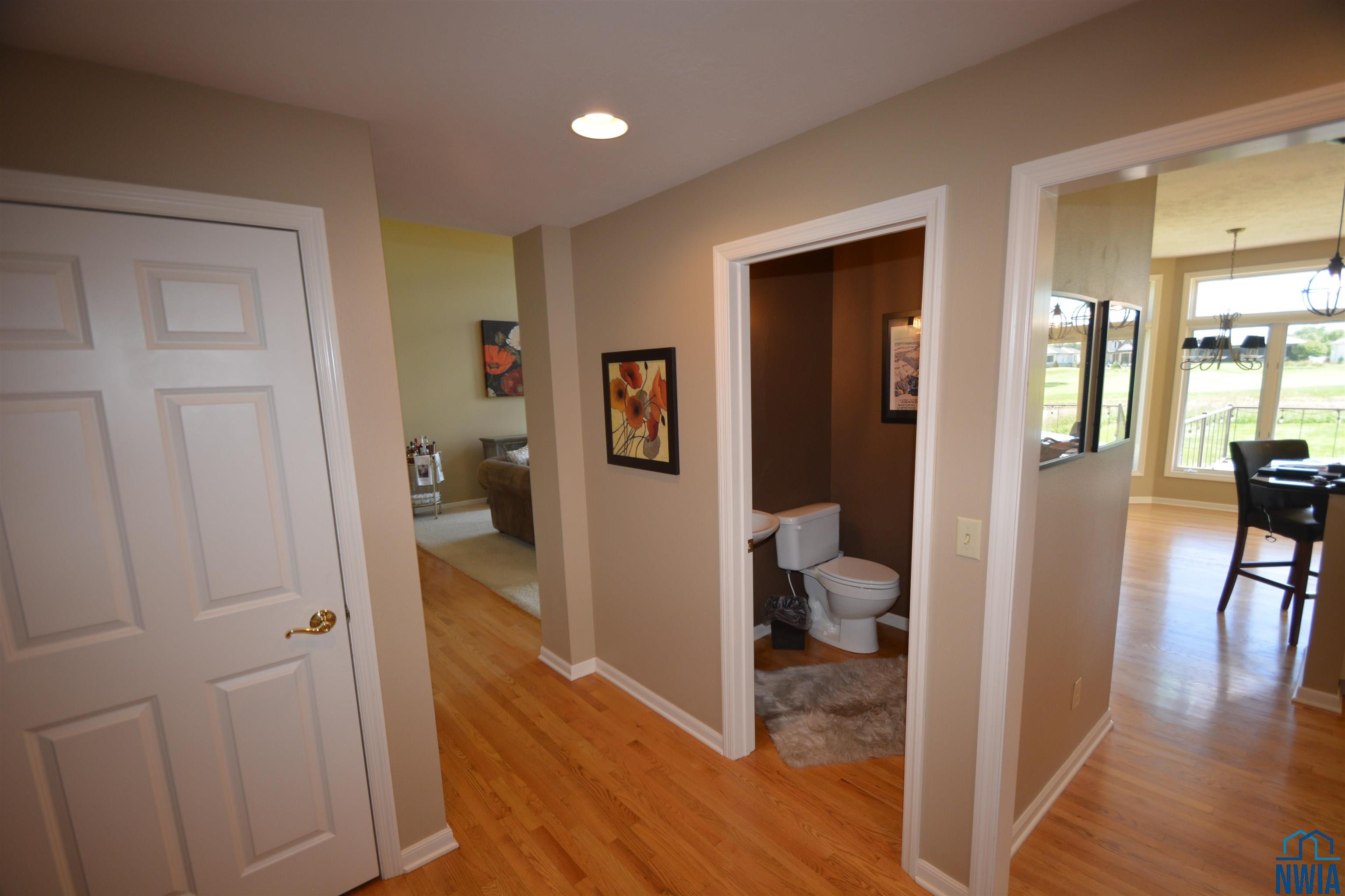 Stunning Golf Course Home with Panoramic Views. Enjoy sweeping views of the Dakota Dunes Golf Course, pond, bridge, and #5 green from this exceptional home on a private 1/3-acre lot. The 2023 updates kitchen boasts a walk-in pantry, crown molding, granite counters, tile backsplash, center island. The sunroom features lead-glass accents, filling the space with character and natural light with patio door to the deck. Upstairs, two bedrooms share a Jack & Jill bath, just off the loft office with access to a sundeck overlooking the course and pond. The spacious basement family room offers a wet bar, crown molding, built-in entertainment center and rope lighting in the tray ceiling. Recent upgrades include concrete decks (2015), siding (2016), 50 yr roof (2018), master bath (2021), and kitchen updates (2023). Storage is abundant with a full lower-level storage area plus a bonus storage room above the garage.