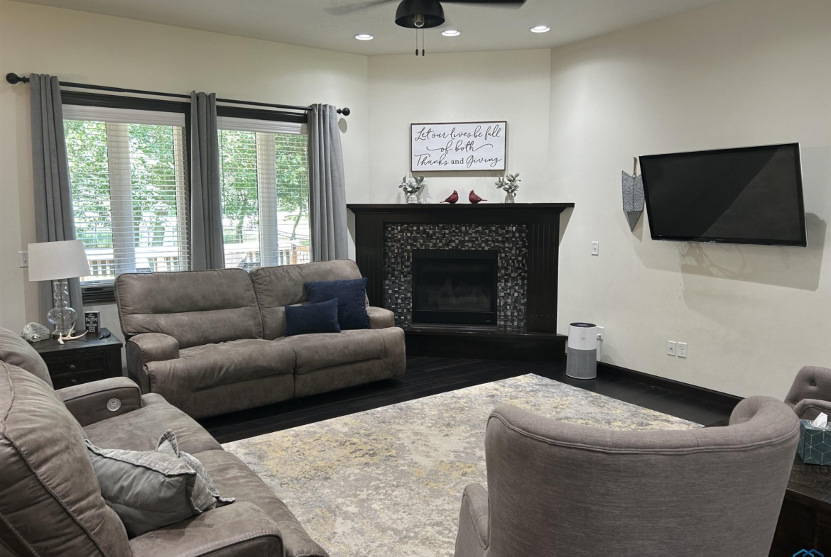 LivingMain18 x 21Fireplace, lots of light, open concept, ceiling fan.