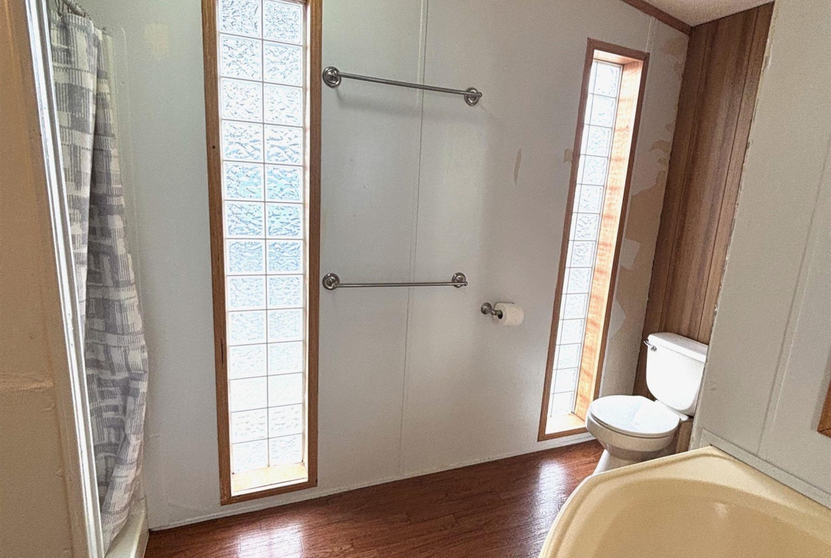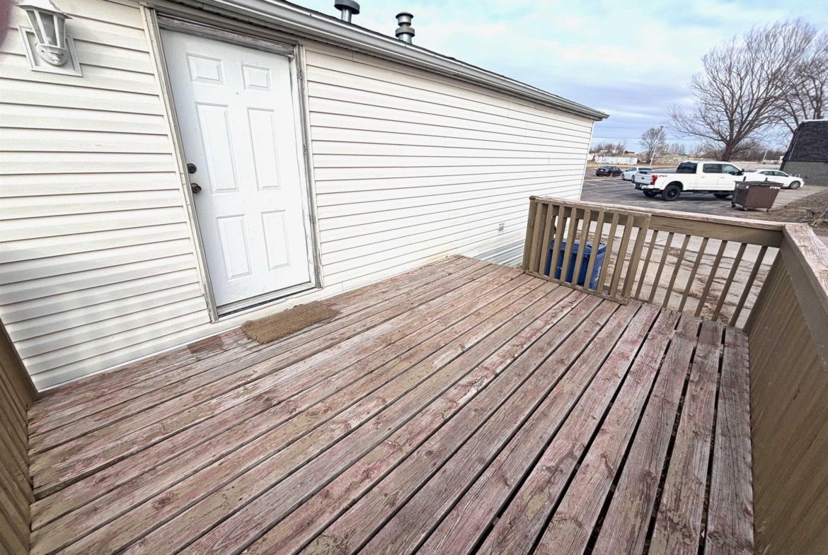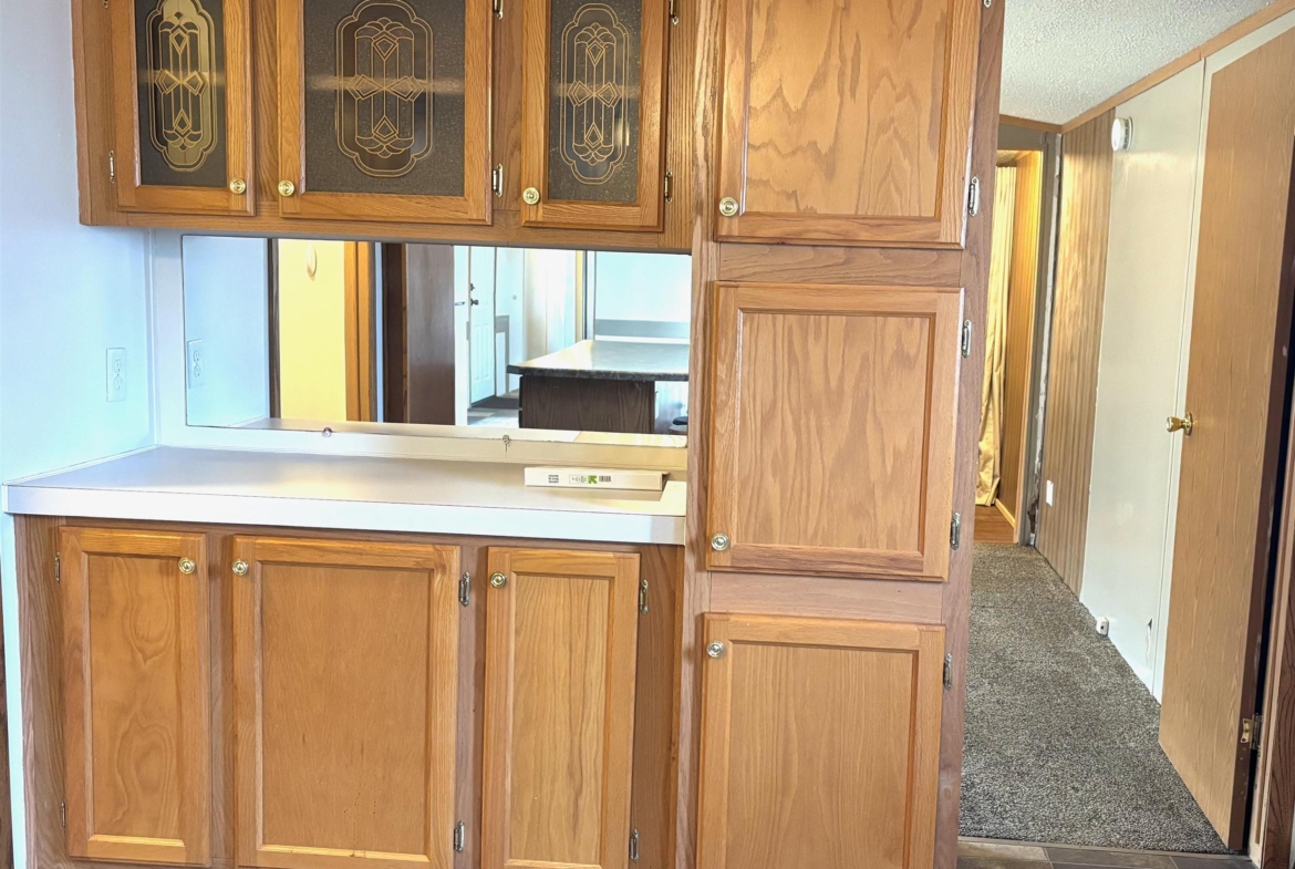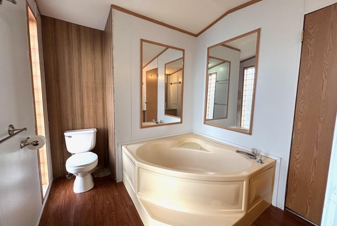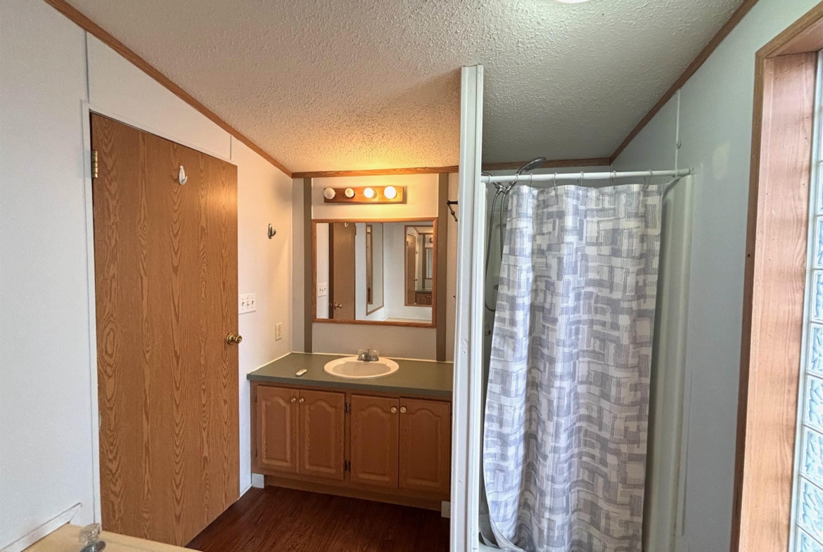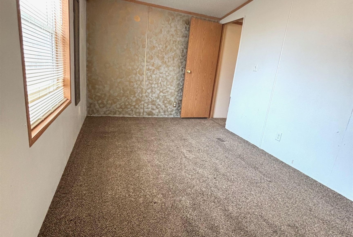 2000 Patriot Model PAT24330IN | 3 Bed | 2 Bath | 1,280 Sq Ft This well-maintained 2000 Patriot Model PAT24330IN manufactured home offers 1,280 square feet of thoughtfully designed living space, featuring 3 bedrooms and 2 full baths in a desirable split-bedroom layout that maximizes privacy and functionality. The spacious primary suite is situated on the west end of the home, separate from the two additional bedrooms and full bath on the east wing—an ideal arrangement for enhanced privacy. The primary bedroom is highlighted by a vaulted ceiling and ceiling fan with remote control, creating an open and comfortable retreat. The ensuite bath is designed for relaxation, featuring an oversized garden tub, separate shower, and distinctive glass block feature windows that provide abundant natural light while maintaining privacy. The kitchen is both functional and inviting, with all major appliances conveniently positioned along the south wall for efficiency. An expansive bar-height counter with built-in storage serves as a natural gathering space and includes four bar stools. This generous workspace allows for effortless entertaining—perfect for meal preparation while guests visit, or assisting with homework while dinner is underway. The upgraded gas range includes a bonus center griddle, and a microwave vent hood adds everyday convenience. The open-concept floor plan seamlessly connects the kitchen and living room, creating an airy and cohesive living space. Vaulted ceilings throughout enhance the sense of volume, while the living room is accented with a ceiling fan and distinctive mirrored tile detail above, adding character and visual appeal. Situated on a large lot, the property offers ample opportunity for outdoor living, recreation, or entertaining. Off-street parking accommodates two vehicles, with additional guest parking conveniently available along Duke Street. The home measures 16′ x 80′, totaling 1,280 square feet. Ideally located one block north of Cherry St.