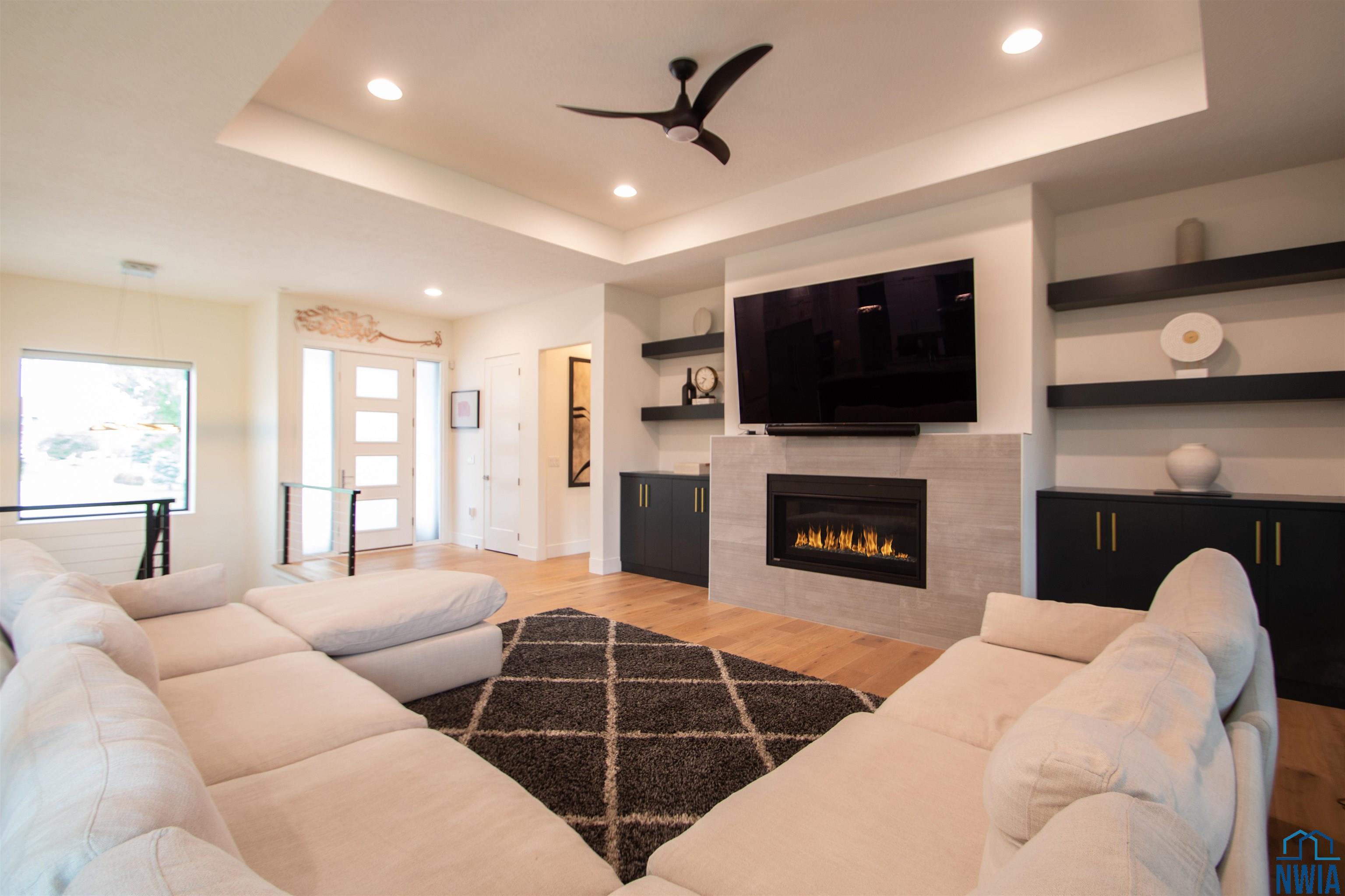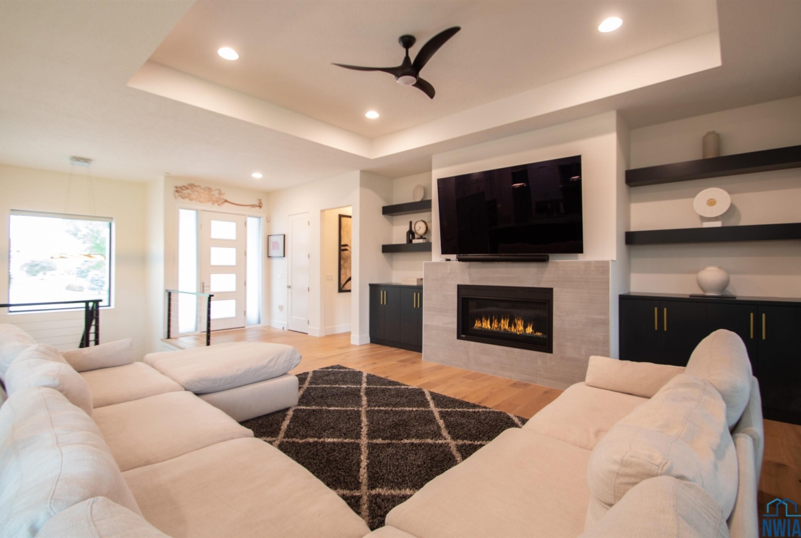 Living | Main | 16 x 18 | linear FP, pop up ceiling, built ins, new paint, new blinds |