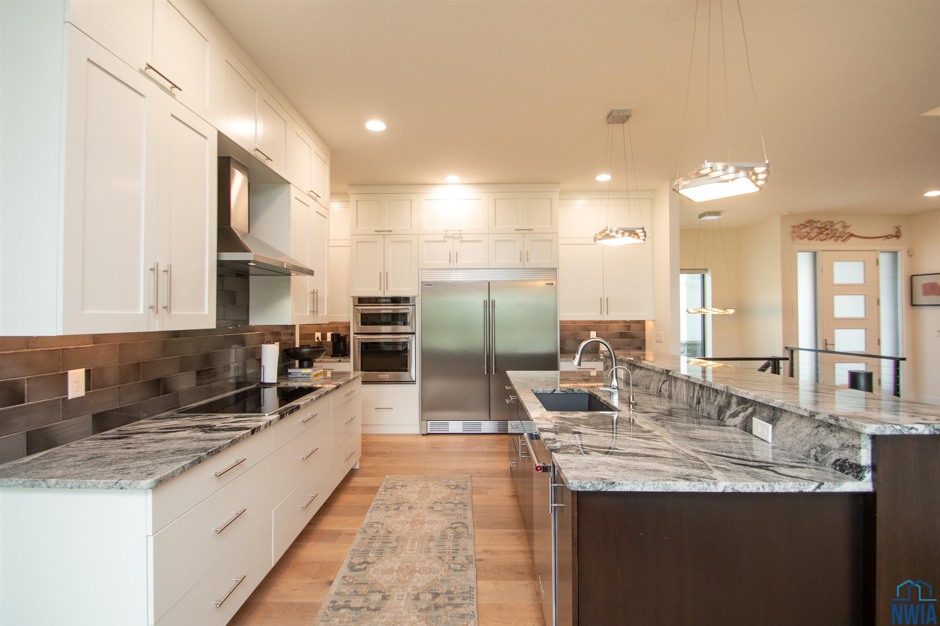 First time this property has been listed for public viewing. Custom built by Wegher, this great property has Adams Nature Preserve in their backyard and direct trail access to the Preserve. Pride of ownership shows with this home. Exterior just repainted 2025. Entire interior also repainted 2024, both main floor and lower level. Original owner selected wide plank engineered flooring for the main living spaces. Linear fireplace in the great room and floating shelves on each side. Pop up ceiling. Remote control blinds in Great room and dining area. Custom kitchen with granite counters, white cabinets, with contrasting island. SS appliances and induction stove. Walk in pantry. Covered Trex deck with automatic screens all three sides. Master bedroom: Custom walls and double crown molding. Two other bedrooms on the main, with closet organizers. All baths have heated floors. Vanities have recently been painted with Farrow and Ball Paint and faucets have been switched to gold Kohler fixtures. Drop zone and main floor laundry. Oversized garage with heat/air. Wired for EV vehicle. Lower level finished with family room, bar area with granite counters and bar frig. 3 more bedrooms with egress windows, walk in closets, 3/4 bath and safe room. Smart Home cameras. Zone heating.