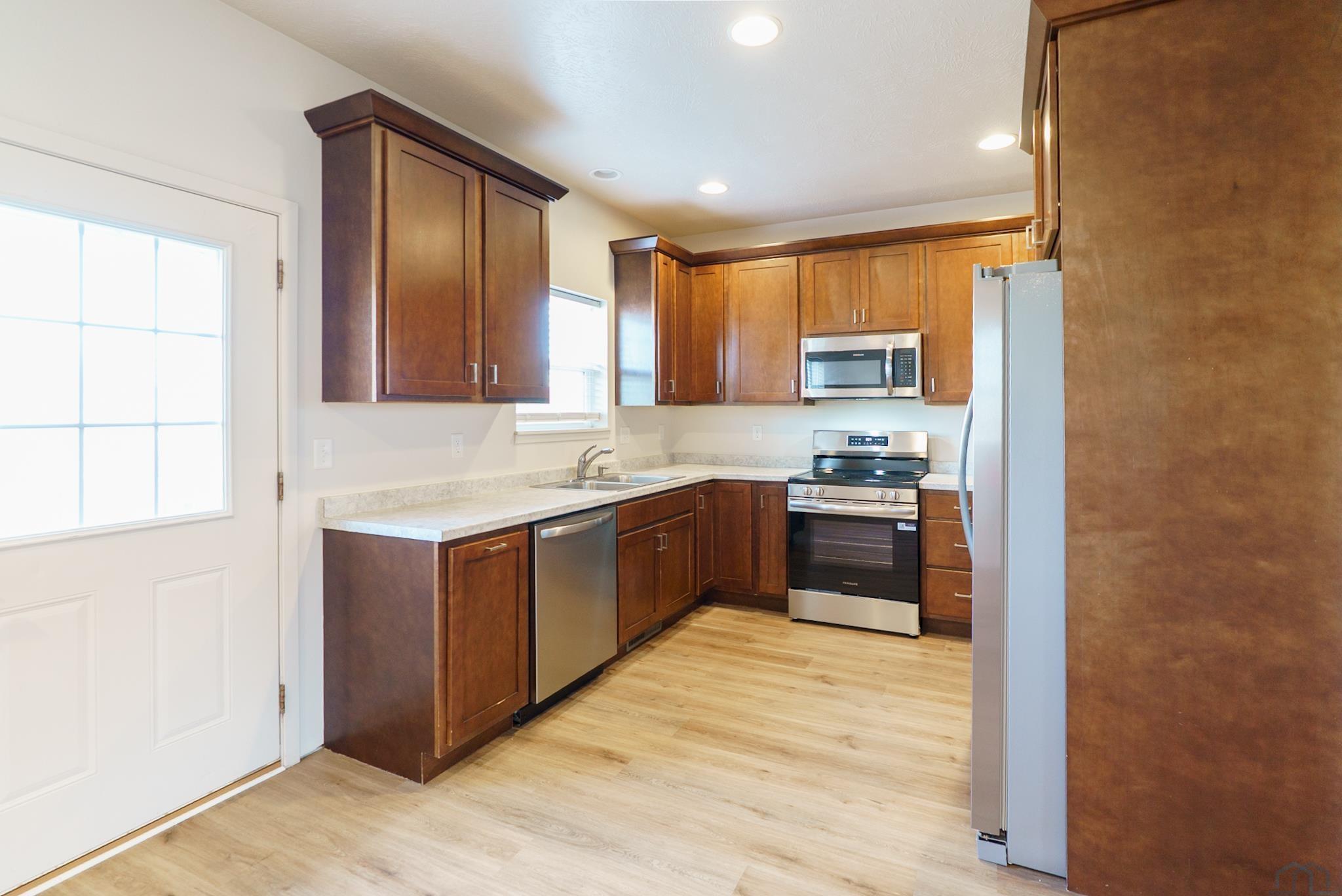 Welcome to 931 Campbell Street in North Sioux City, SD – a beautifully maintained duplex built in 2018, offering modern comforts and thoughtful updates throughout. Situated on a spacious, flat lot that extends all the way to the street behind, this property provides both curb appeal and functionality. Inside, you’ll find fresh paint, brand new luxury vinyl tile, and plush carpet that give the home a crisp, move-in ready feel. The kitchen shines with rich cherry cabinets, laminate countertops, and stainless steel appliances that all stay with the home. The main floor offers a comfortable layout with a primary suite featuring a ¾ bath, complete with a modern shaker-style vanity and walk-in shower. A second bedroom with a double closet and a full hall bath provide flexibility for guests. Downstairs, you’ll love the expansive living space with all-new carpet, a third bedroom with egress, and another full bathroom—perfect for entertaining, relaxing, or hosting overnight guests. Other highlights include an attached one-stall garage with opener and keypad, plus the peace of mind knowing the sellers have taken excellent care of the home. This property is being offered separately from 929 Campbell Street but can also be purchased together—an excellent opportunity for an owner-occupant, investor, or someone looking for multi-generational living. 931 Campbell Street is truly a blend of comfort, convenience, and value—ready for its next chapter.