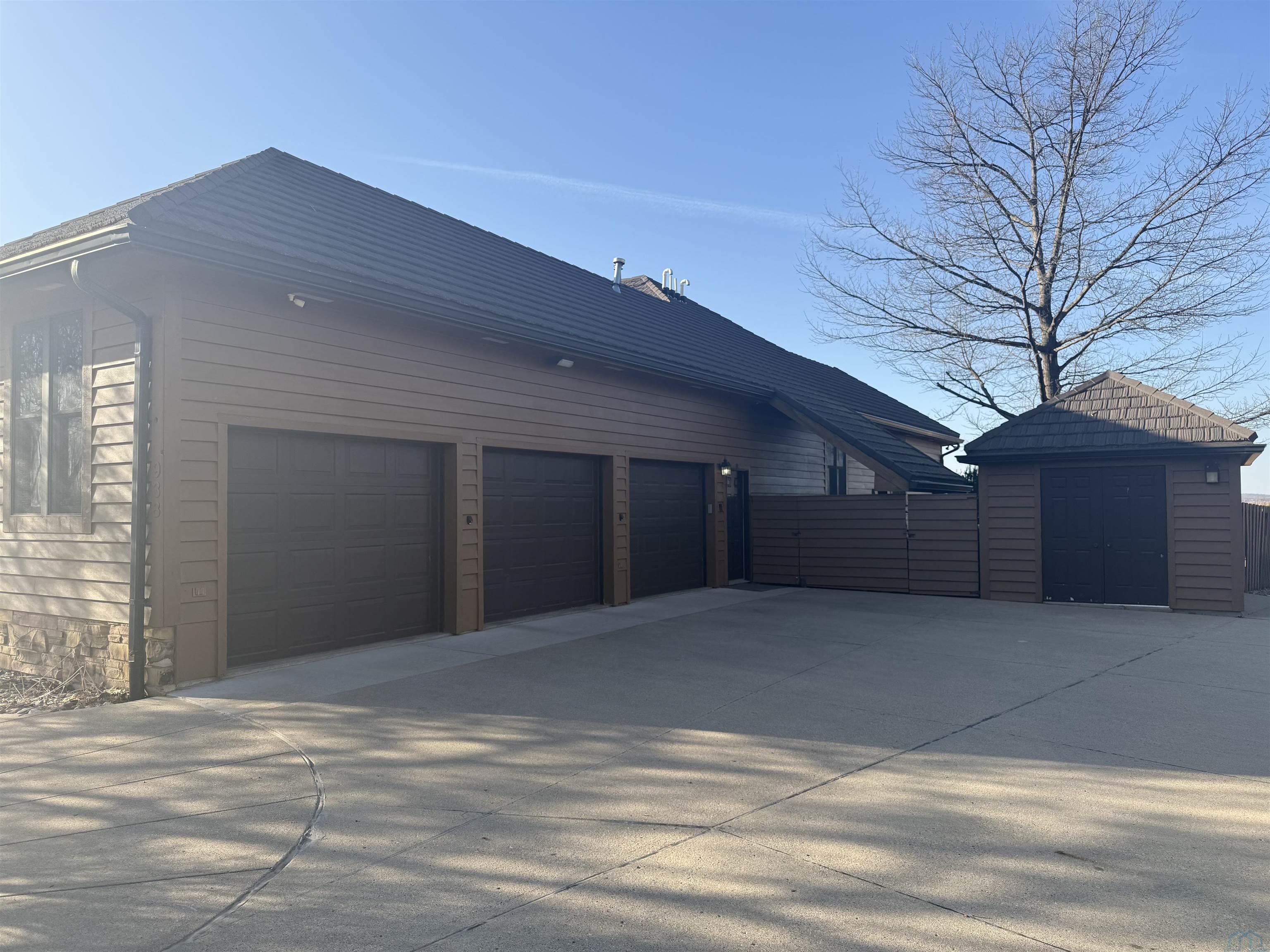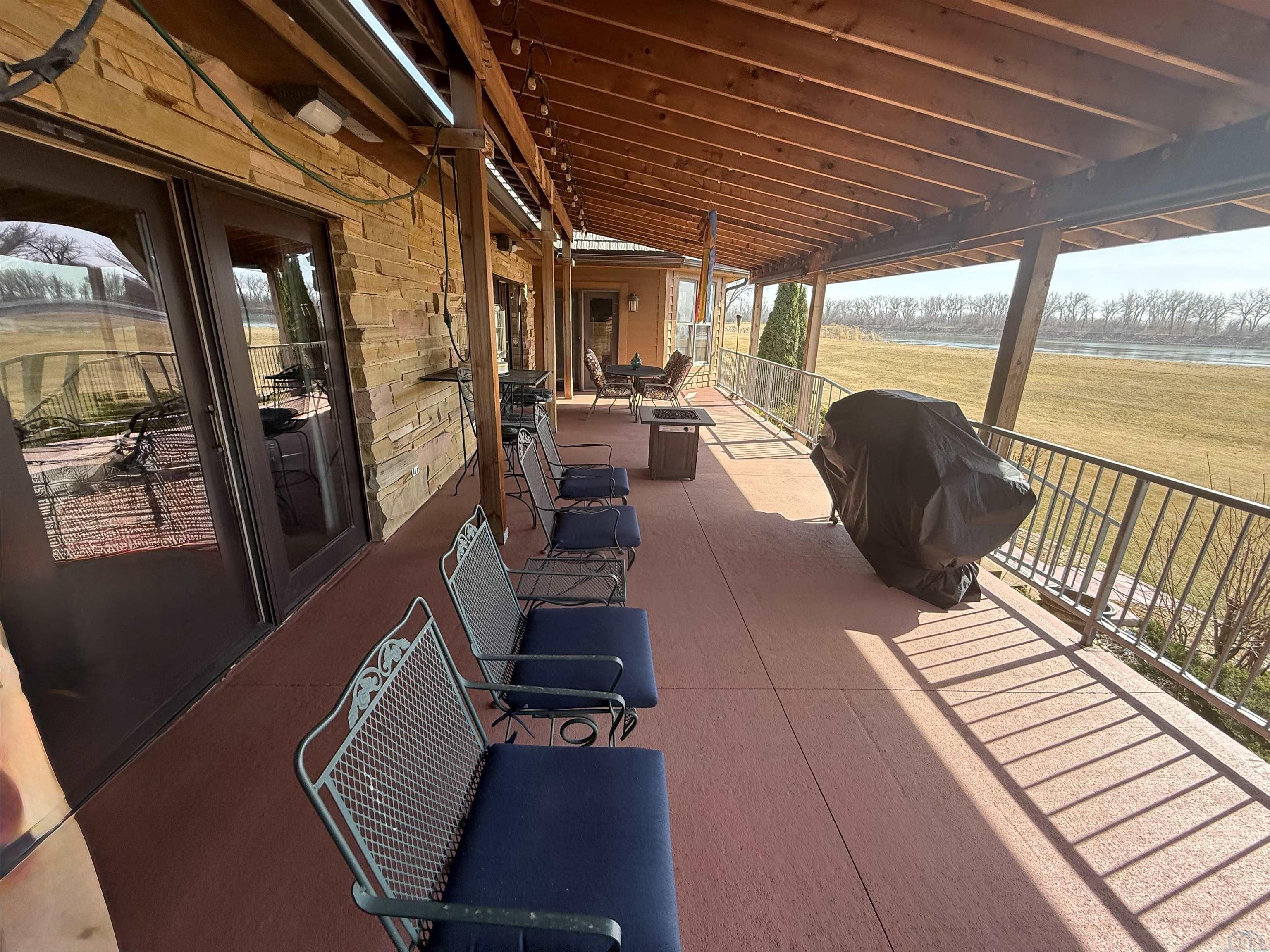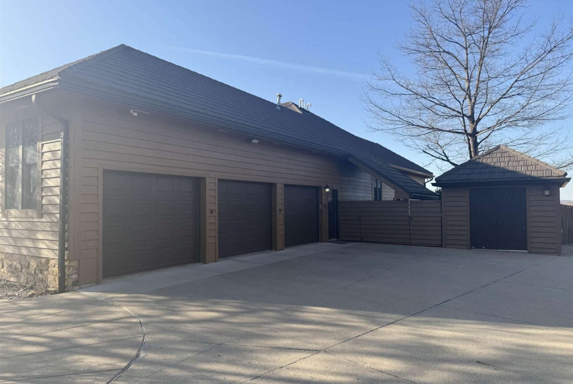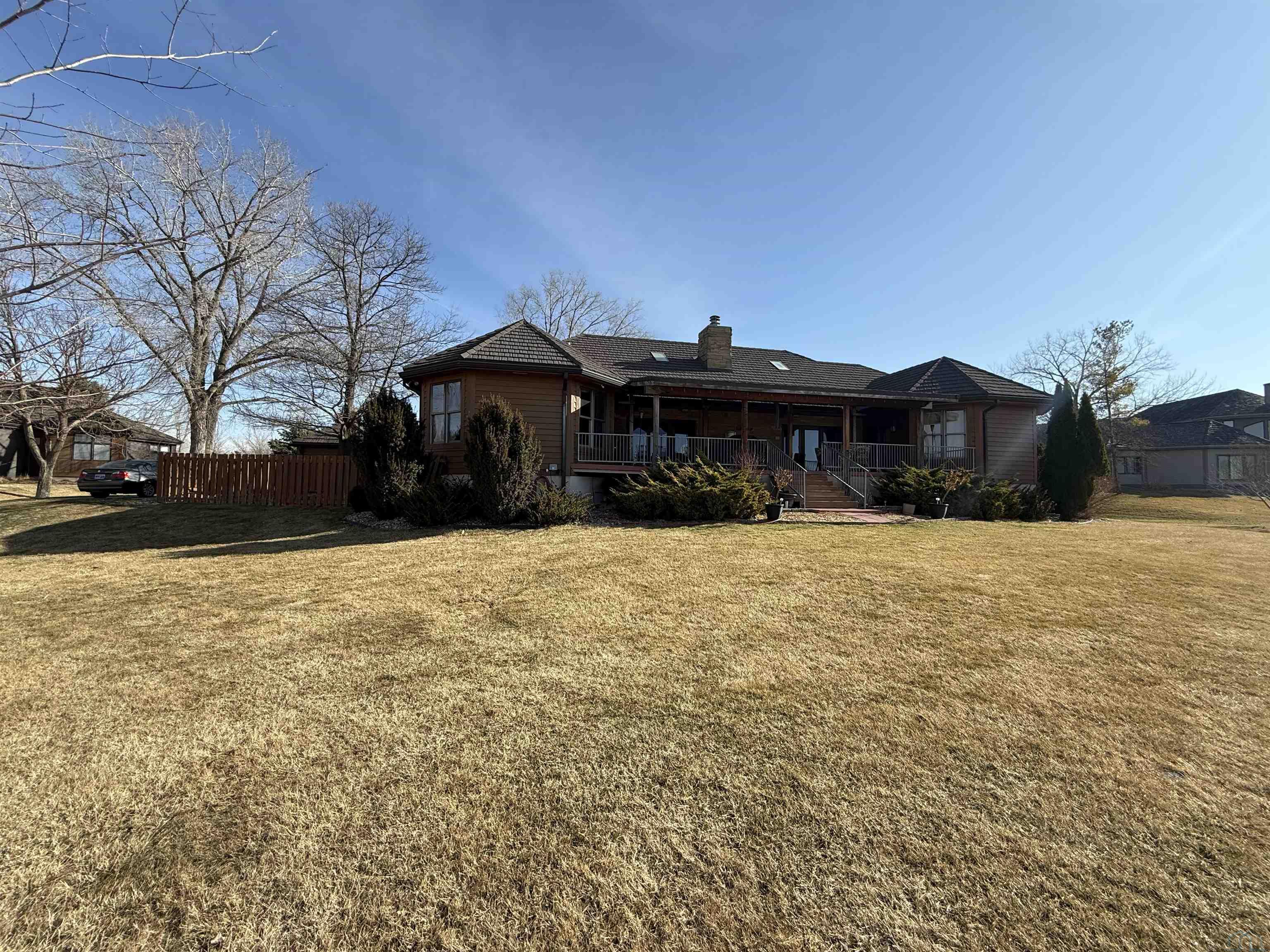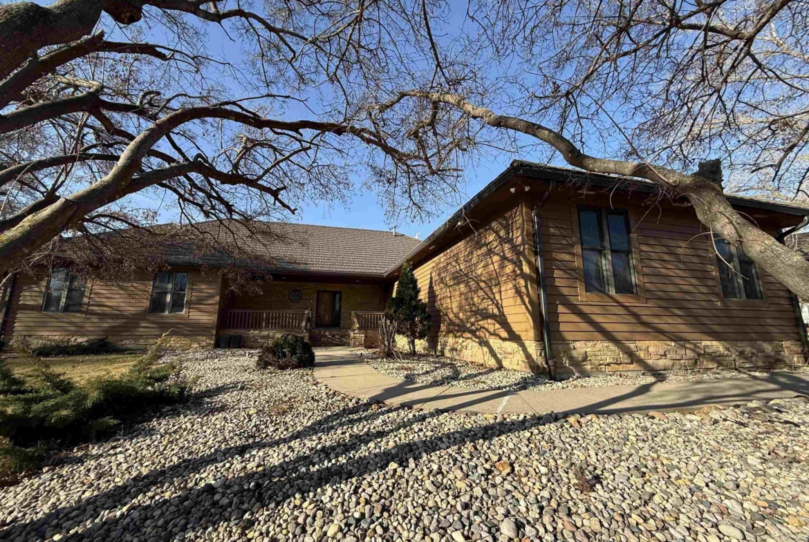 Nestled at the culmination of a secluded cul de sac and offering commanding vistas of the iconic Missouri river, this expansive four bedroom four bath ranch is an oasis from the grind of everyday living. The great room, kitchen, family room and primary suite all offer access to the sprawling concrete covered deck with stunning views of the river. Upon entry, the home welcomes with a grandeur, the focal point being a magnificent double sided stone fireplace delineating the kitchen and great room and sets the perfect ambiance for cozy evenings with loved ones. The culinary domain impresses with hardwood flooring, granite counter tops, tile backsplash and upgraded appliances. The great room and adjoining family room beckons for relaxation and boundless possibilities for entertainment. A sanctuary of repose, the primary suite boasts a spa like bath and generous walk in closet. Two of the remaining three bedrooms on the main are offering comfort and convenience with their own baths and walk in closets. Large main floor laundry has utility sink and lots of cabinets and counter space. The lower level is partially finished with interlocking matted floor squares. A protected 45 foot shooting range is ideal for an archery or gun enthusiast. In addition, the lower level has three large flexible areas, a wine room and plenty of closets and storage. Oversized, attached three car garage is heated and floor was just freshly painted. Large storage shed and fenced area on side of house is ideal for pets or a myriad of other uses. This almost one acre lot has in ground sprinkler system. Roof was replaced in 2017 with lifetime steel shake shingles. Cedar siding was freshly re-stained last fall. New gutter helmets were also installed at that time. Make this well built expansive ranch yours!