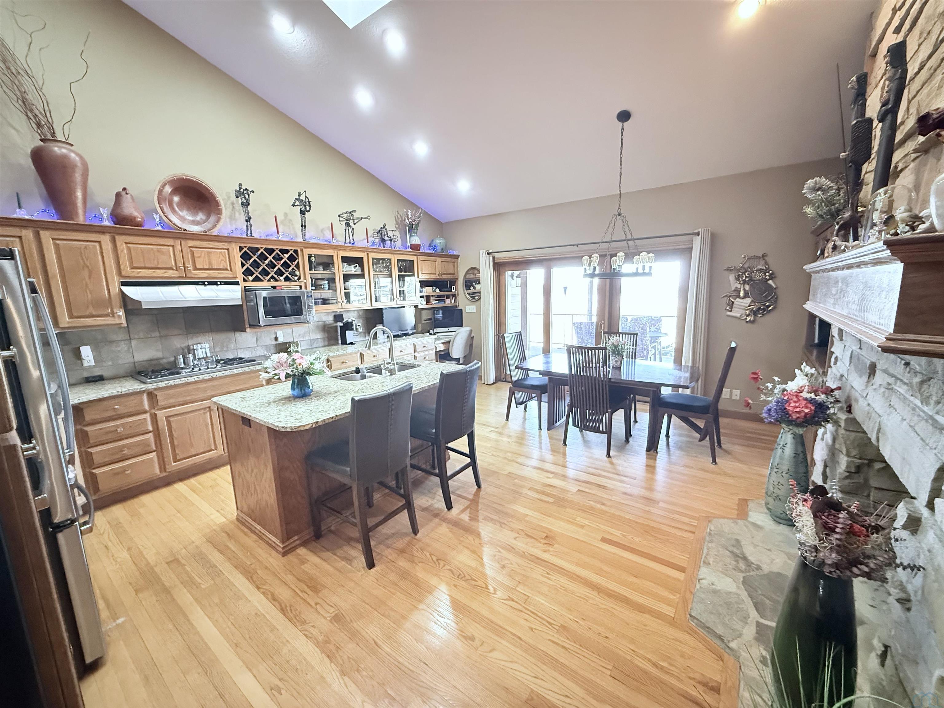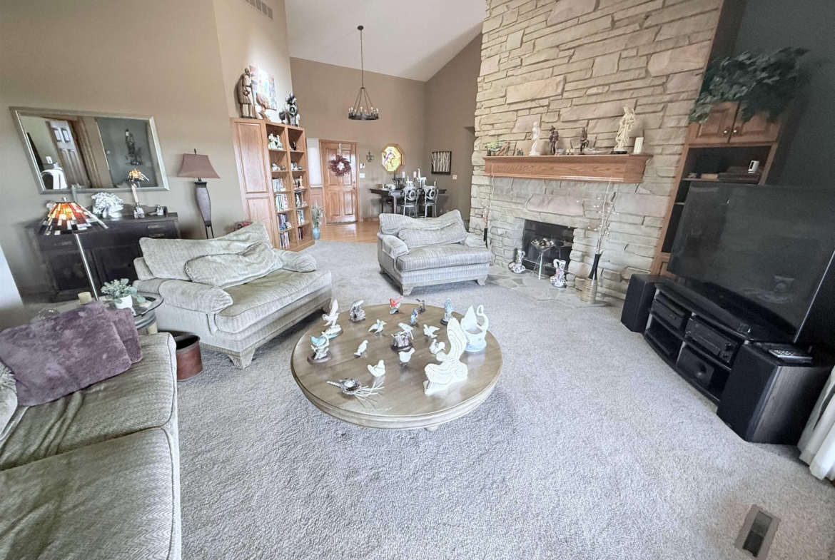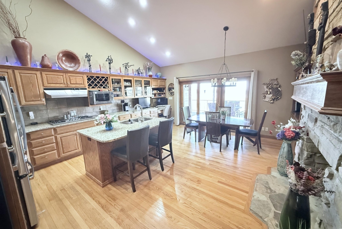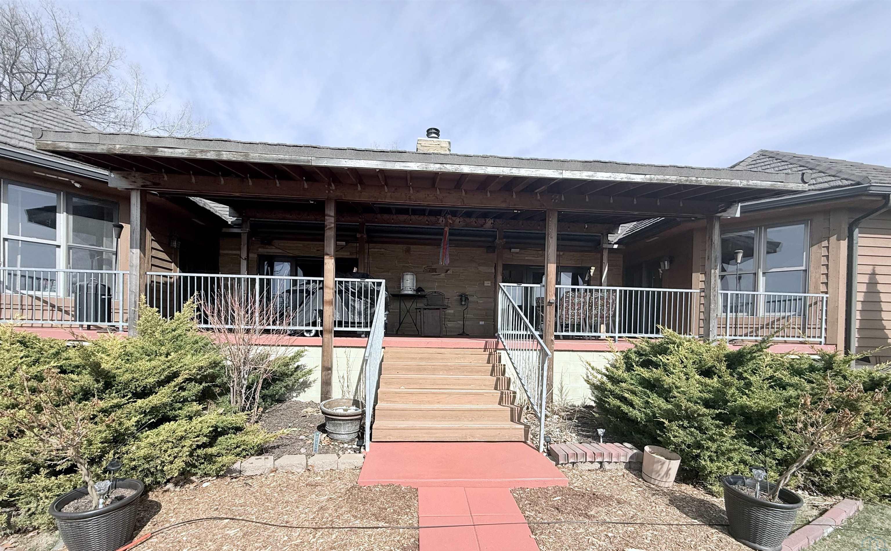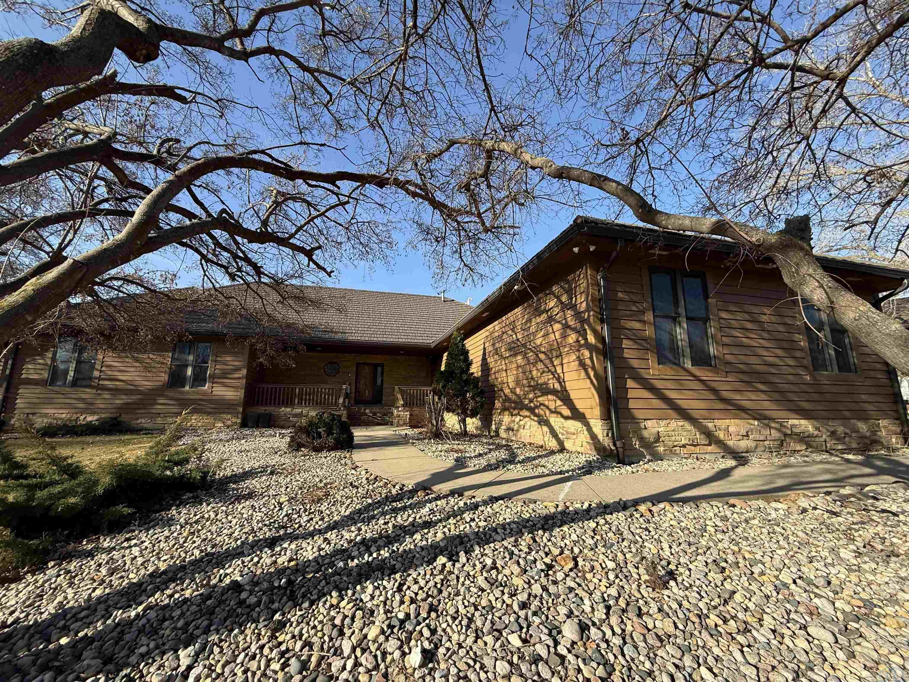 Nestled at the culmination of a secluded cul de sac and offering commanding vistas of the iconic Missouri river, this expansive four bedroom four bath ranch is an oasis from the grind of everyday living. The great room, kitchen, family room and primary suite all offer access to the sprawling concrete covered deck with stunning views of the river. Upon entry, the home welcomes with a grandeur, the focal point being a magnificent double sided stone fireplace delineating the kitchen and great room and sets the perfect ambiance for cozy evenings with loved ones. The culinary domain impresses with hardwood flooring, granite counter tops, tile backsplash and upgraded appliances. The great room and adjoining family room beckons for relaxation and boundless possibilities for entertainment. A sanctuary of repose, the primary suite boasts a spa like bath and generous walk in closet. Two of the remaining three bedrooms on the main are offering comfort and convenience with their own baths and walk in closets. Large main floor laundry has utility sink and lots of cabinets and counter space. The lower level is partially finished with interlocking matted floor squares. A protected 45 foot shooting range is ideal for an archery or gun enthusiast. In addition, the lower level has three large flexible areas, a wine room and plenty of closets and storage. Oversized, attached three car garage is heated and floor was just freshly painted. Large storage shed and fenced area on side of house is ideal for pets or a myriad of other uses. This almost one acre lot has in ground sprinkler system. Roof was replaced in 2017 with lifetime steel shake shingles. Cedar siding was freshly re-stained last fall. New gutter helmets were also installed at that time. Make this well built expansive ranch yours!