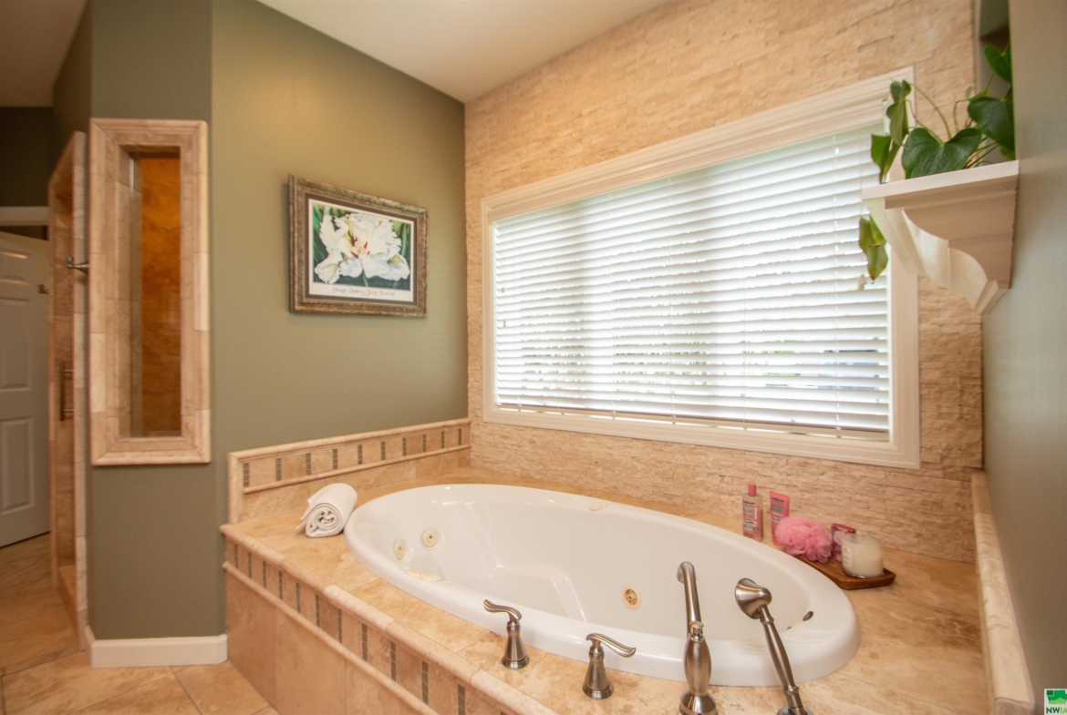 Full Bath | Main | 21 x 11 | heated flr, oversized tile shower, whirlpool tub, dbl van |