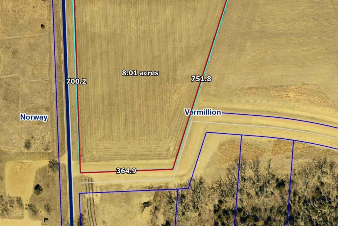 | Legal Description | TBD, to be surveyed, 8-acre parcel located at the corner of 460th Ave and Daniel Place, Vermillion, SD |