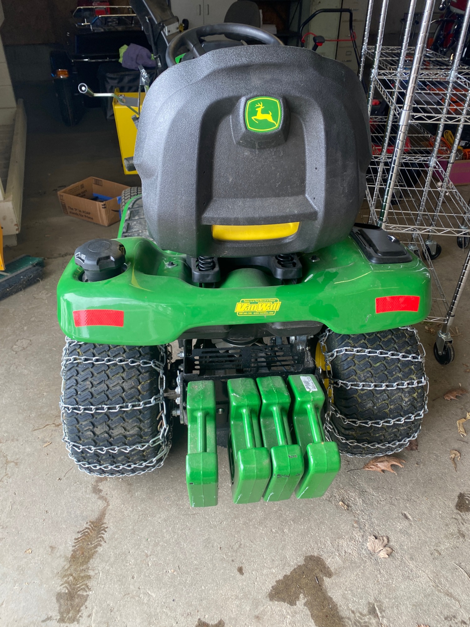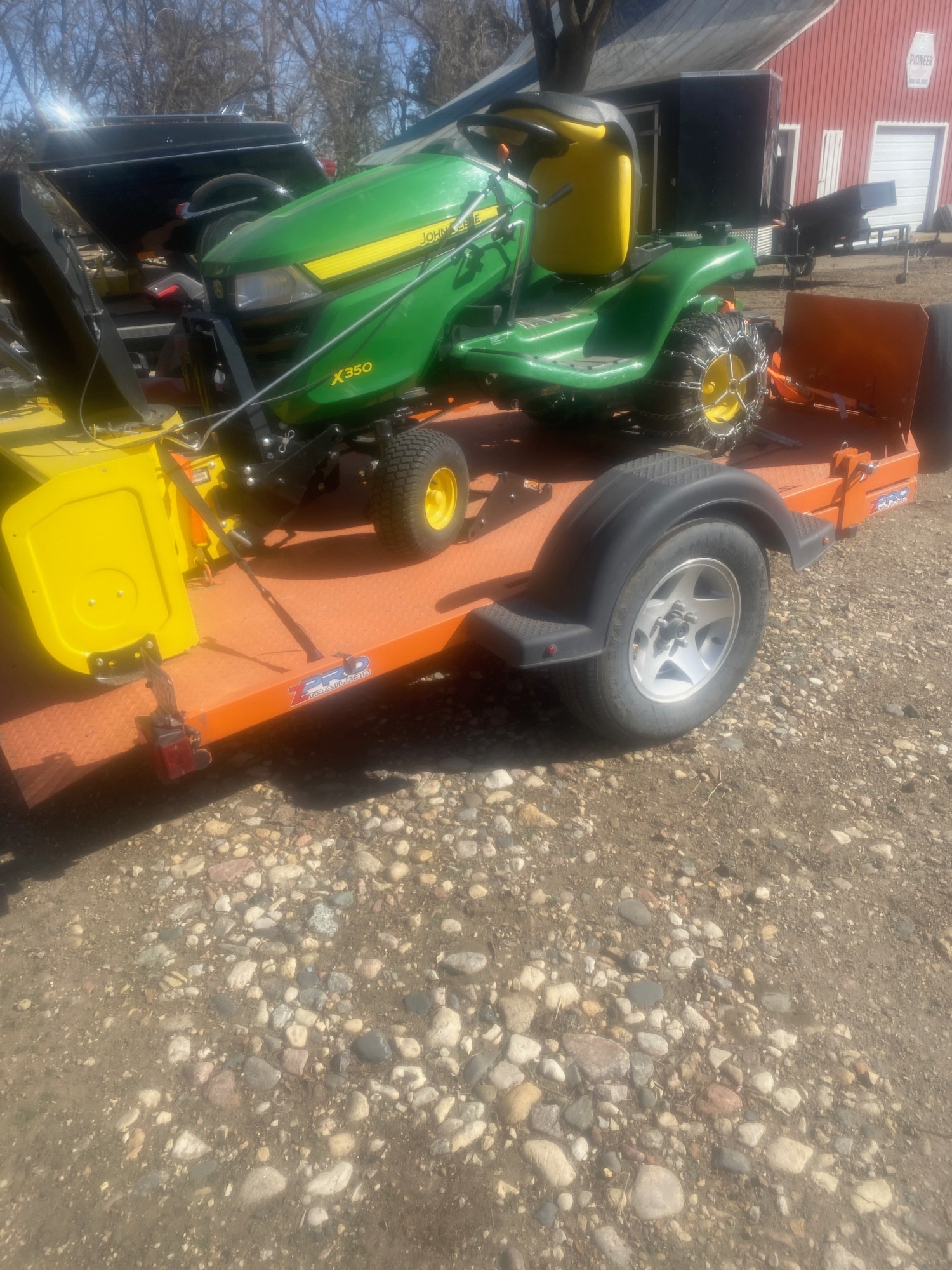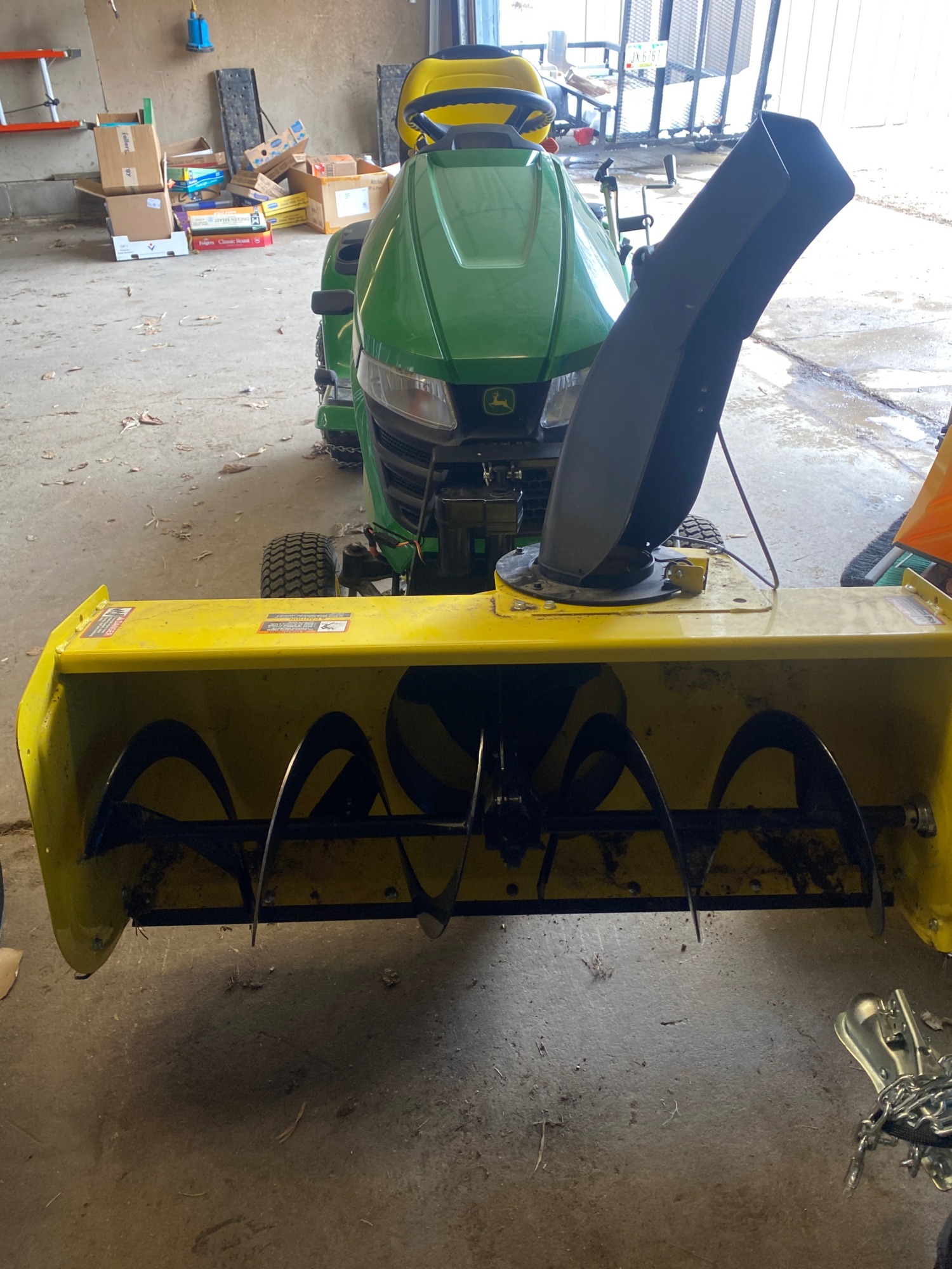Shawn and Shelley Fick; John Deere model a print, John Deere model G tractor inbox, JD model MT tractor inbox, JD model 40 tractor inbox, John Deere model 40 tractor damaged to box, John Deere model 530 inbox, John Deere model 4020 inbox, John Deere model 4020 damaged to box, John Deere model 630LP tractor and wagon in box, JD model 1010 crawler with blade inbox, JD model G tractor inbox, John Deere model 720 with blade inbox, John Deere 820 no box, 2 JD model 720s no box, JD model A no box, JD model R no box, formal H no box, Ertyl antique pump jack in box, JD metal container, milk can, lunchbox, soup, cup, saucer, coffee mug, tic-tac-toe game set, two JD model 420 ornaments in box, JD 95 combine 1/16 scale, cat 12 G motor greater, cat 12 G motor greater no package, 11 JD various small tractors, JD 2007 calendar, JD 8 inch tractor clock inbox, Thermo king tractor trailer inbox, Ford tractor trailer inbox, Ford quality care tractor trailer inbox, Ford 1902 the 999 racer inbox, BP gas pump, metal car ramps, three blue garbage cans, three black garbage cans, metal garbage cans, green garbage can, large green garbage can, green salt lick barrel, antique, measuring wheel, three kerosene heaters, nuts and bolt container, stack of 5 gallon buckets, tarp cover, gas cans, two portable generators, two boxes of records, tote of pint canning jars, dorm fridge, various small tools, sander, jigsaw, red lantern, wood rocking chair, hose, real and hoses, push grass cutter, two wheel cart, plumbing pieces, metal patio swing, red wagon, two rocking patio chairs, rolling red toolbox full of tools, air tank, make up vanity, metal hammock swing.